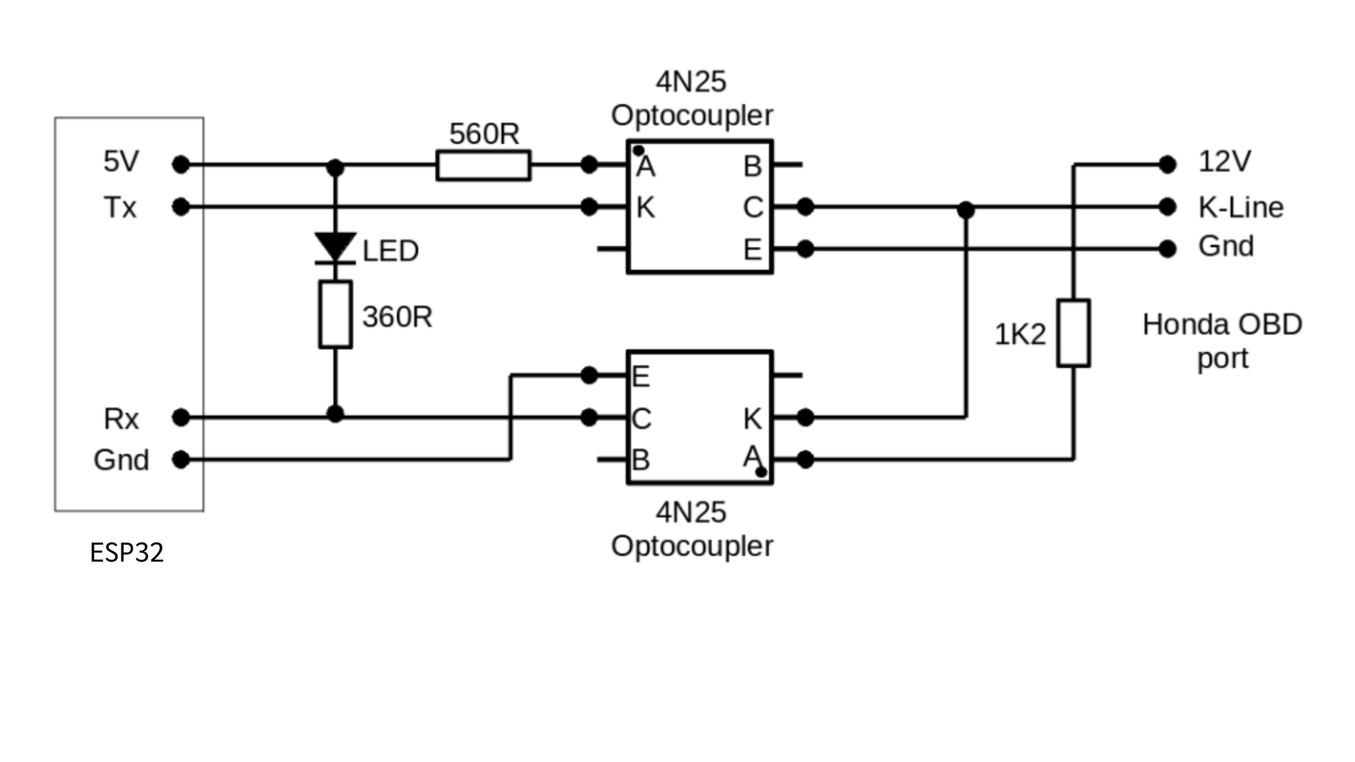 - การต่อ: ESP32 TX→TXD, ESP32 RX←RXD, ขา K ของชิป ไปที่ 4N25 Optocouper